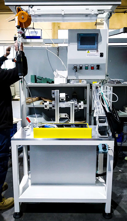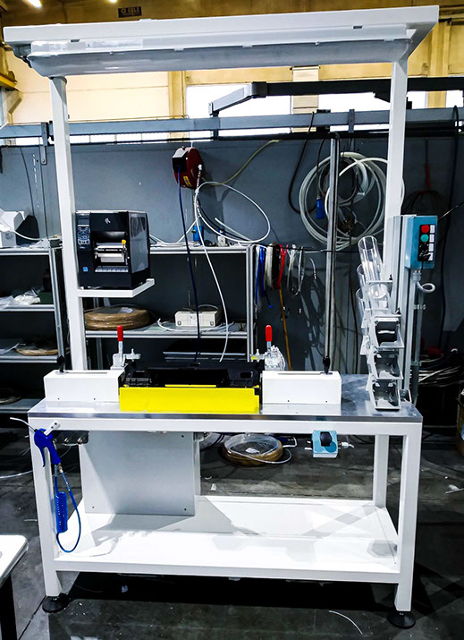 Progettazione e realizzazione di banchi per il montaggio, il controllo e la verifica dei componenti con oggettivazione, corredati da tutti gli strumenti di cui il Cliente ha bisogno, come ad esempio avvitatori elettrici con controllo della coppia, movimenti manuali/automatici con azionamento pneumatico/meccanico, barriere fotoelettriche per la sicurezza degli operatori, dispositivi ottici e stampanti per la tracciabilità . Tutte le macchine vengono consegnate con allegata documentazione e auto-certificazione CE di rispondenza alla direttiva macchine 2006/42/CE.